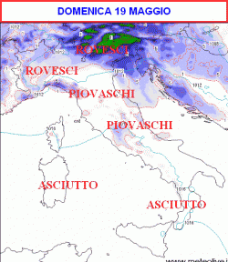 DOMENICA e LUNEDI ancora instabile al centro-nord con possibili piogge e rovesci alternati ad occhiate di sole, tempo migliore al sud. Ventoso e mite. MARTEDI bello al centro-sud, ancora qualche pioggia al nord, limitatamente alle zone montuose. Clima gradevole.