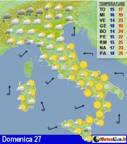 Tendenza per i giorni successivi: Mercoledì possibili piogge sulla Sardegna e al centro-nord, piu sole altrove. A seguire situazione incerta, ma coin probabili piogge sulla Sardegna e al centro-sud giovedì.