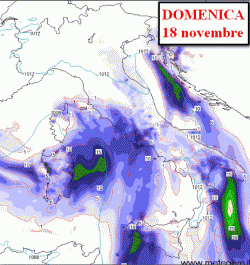 Domenica possibili piogge su diverse regioni del centro-sud, più asciutto al nord. Lunedì piogge su gran parte d'Italia, con pause asciutte al nord-ovest e sul Tirreno. Martedì piogge sulle regioni adriatiche e al sud, asciutto ed in parte soleggiato altrove. Non farà eccessivamente freddo.