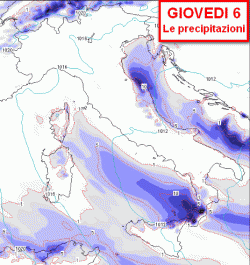 Giovedì rovesci al sud, Isole e medio Tirreno, in estensione al versante adriatico giovedì sera. Neve sui 700-800 metri. Bello al nord. Venerì peggiora al nord con neve anche in pianura, temporanea tregua del tempo al centro-sud. Sabato perturbato al centro-sud con neve anche a bassa quota, migliora al nord-ovest, freddo e ventoso.