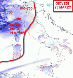 Nuovo peggioramento su tutte le regioni fin dal mattino. Possibilità di piogge sparse ad iniziare dalla Liguria e dalla bassa Pianura, ma in estensione a tutte le regioni entro il pomeriggio. Neve sulle Alpi al di sopra dei 1200-1300 metri. Clima umido e freddo.