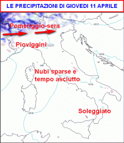 Giovedì tempo discreto sull'Italia, ma con nubi in aumento al nord e rischio di qualche precipitazione sulle Alpi. Venerdì moderato peggioramento al nord e sull'alta Toscana, tempo soleggiato e molto mite altrove. Sabato ancora qualche incertezza al nord e nelle zone interne dell'Italia centrale, per il resto soleggiato. Temperature in aumento.