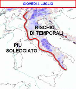 Giovedì qualche temporale su basso Veneto, Emilia Romagna, regioni del medio Adriatico e zone interne in genere. Altrove bel tempo. Venerdì qualche temporale qua e là al sud e nelle zone interne dell'Italia centrale, bel tempo altrove. Sabato qualche temporale possibile sui rilievi nel pomeriggio, sole e caldo altrove.