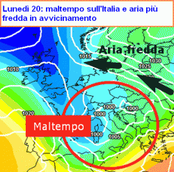 ANALISI della situazione attuale: un vasto e complesso campo di basse pressioni si articola dall’Atlantico fin sull’Europa, conivolgendo anche il Mediterraneo e l’Italia. La perturbazione giunta martedì sull’Italia, insisterà mercoledì ancora al sud, mentre altrove un lieve e temporaneo rialzo della pressione, darà luogo ad un miglioramento passeggero. La perturbazione che vediamo stagliata ad ovest delle Isole Britanniche raggiungerà il nostro settentrione nella giornata di giovedì, quando darà luogo ad un nuovo peggioramento.