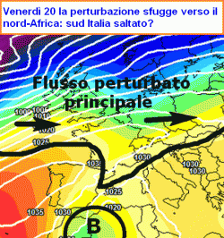 Venerdì invece la saccatura contenente la perturbazione subirà un’opera di stretching che finirà per spezzare il corpo nuvoloso, isolandone la parte meridionale entro un minimo sui nostri mari di ponente in direzione dell’Algeria. Il nostro meridione, stando alle ultimi analisi, potrebbe venir saltato a piè pari da questa perturbazione (probabilità 65%).