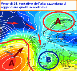 Un flash meteorologico e a medio-lungo raggio, per trovare conferma alle ipotesi già intravviste con la modellistica della mattina. La prossima settimana proporrà una manovra cardine che tenterà di sovvertire la persistenza del regime perturbato atlantico di origine canadese. La mossa è demandata al redivivo anticiclone delle Azzorre, che lancerà un gancio verso l’Europa occidentale, fin quasi alla penisola Iberica.
