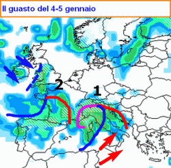 Fino all'Epifania niente gelo invernale ma tante perturbazioni, in un contesto termico spesso superiore alla media del periodo. La neve attesa solo in montagna, anche abbondante sulle Alpi. Il guasto peggiore tra il 4 e il 5 gennaio.