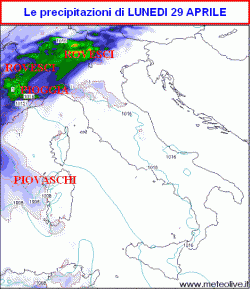 Al mattino qualche pioggia sul Veneto occidentale. Abbastanza buono il tempo altrove. Nel pomeriggio maggiore possibilità di piogge su tutte le regioni, anche se alternate a pause asciutte e relativamente soleggiate. Ventilazione moderata, clima mite.