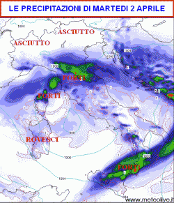 Martedì tempo perturbato con piogge su gran parte della nostra Penisola, specie al centro-sud. Mercoledì instabile al sud e sulle regioni adriatiche, abbastanza buono il tempo altrove. Giovedì nuovo peggioramento al nord e su parte del centro, con piogge, bel tempo al sud.
