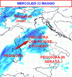 MERCOLEDI peggiora al centro-sud, migliore la situazione al nord, specie al nord-ovest dove saranno maggiori le schiarite. GIOVEDI brutto tempo su parte del centro e al sud, migliore la situazione al nord. Ventoso e fresco ovunque. VENERDI peggiora al nord-est con precipitazioni, nubi sparse altrove. Temperature in calo ad iniziare dalle regioni settentrionali.