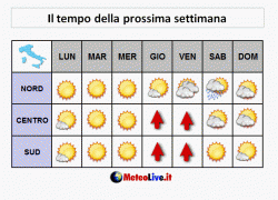 Nel contempo al nord potranno verificarsi situazioni temporalesche, dapprima sulla Liguria, poi probabilmente tra bassa Lombardia ed Emilia-Romagna. Alcuni annuvolamenti filtreranno anche sulla Toscana, per il resto al centro-sud dominerà ancora il sole, salvo un transito di modeste velature.