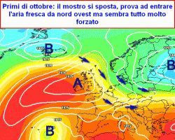 C’è però da notare come l’aria fredda comunque si organizzi sul nord Europa e non rimanga a guardare oltre i primi giorni di ottobre, quando approfittando di una temporanea ritirata verso il Regno Unito dell’alta pressione, una corrente fredda si insinuerebbe in direzione dell’area balcanica, coinvolgendo anche le regioni adriatiche ed il nostro meridione, con l’idea di portare una netta diminuzione delle temperature e anche del maltempo.