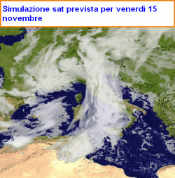 Partiamo dunque da questa nuova perturbazione: la vediamo ben disegnata nell’immagine qui a fianco, elaborata dal Servizio Meteorologico dell’Aeronautica Militare, e riproducente la posizione delle masse nuvolose. Le vediamo spiraleggianti attorno ad un perno centrato sul golfo Ligure.