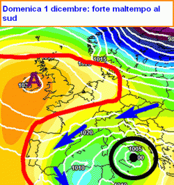 Oltretutto la nuova depressione italica, pur rimanendo orfana degli apporti d’aria fredda, riuscirà a contare su un’energia cinetica ancora notevole, tanto che insisterà con ulteriori condizioni di instabilità tra il nostro meridione e le Isole Maggiori per gran parte della prossima settimana. Questo anche quando l’anticiclone si sarà nuovamente fatto coraggio, proponendosi sull’Europa centrale. La sua spinta risulterà determinante per il nostro centro-nord, dopve darà luogo ad una tregua del maltempo tra il 2 e il 5 dicembre, tregua accompagnata da un generale rialzo delle temperature su valori in linea (o anche leggermente al di sorpa) delle medei stagionali.