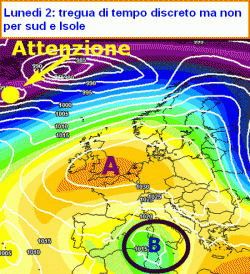 Teniamo intanto sempre d’occhio il minimo contrassegnato con la lettera "B2", in movimento dala Spagna verso la Tunisia.