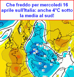 SUD: Tempo instabile con rovesci sparsi su Molise, Puglia, Basilicata, Calabria e nord Sicilia, anche temporaleschi e accompagnati da grandine, locali nevicate oltre gli 800-1000m in Appennino. Più soleggiato su Campania e sud Sicilia. Ancora ventoso e freddo per la stagione.