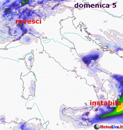 Domenica instabile al sud, nubi e qualche pioggia in arrivo al nord-ovest, bello al centro. Lunedì al nord nuvoloso con qualche pioggia residua ma in miglioramento, schiarite al centro, residui acquazzoni anche al sud, in attenuazione. Martedì bello ovunque, salvo strati nuvolosi bassi sulle pianure del nord.