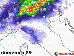 Domenica violenti temporali in sfondamento in Valpadana con grandinate, vento e calo termico, rovesci anche in Toscana, sul resto d'Italia ancora prevalenza di sole e caldo. Lunedì rovesci sull'estremo nord-est, Toscana, Umbria, Marche, zone interne del centro, Maestrale forte in Sardegna, attenuazione del caldo al sud. Martedì di nuovo un po' instabile al nord-ovest, bello altrove.
