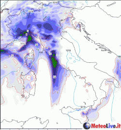 Maltempo in arrivo con piogge e temporali anche forti lungo le regioni tirreniche e sulla Sardegna occidentale, tempo probabilmente asciutto lungo le coste abruzzesi e la Sardegna orientale. Venti meridionali piuttosto tesi e temperature miti per il periodo.