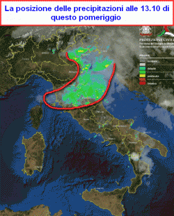 Rispetto alla mattinata, le precipitazioni più importanti si sono mosse verso levante e verso sud. Nel primo pomeriggio le regioni alle prese con piogge e temporali sono: le zone interne della Toscana, l’Umbria, le Marche, il Veneto, il Friuli e in parte anche l’est della Lombardia. Qualche precipitazione, occasionalmente temporalesca, è segnalata anche nel Lazio, sulla Puglia e in Calabria. Belle schiarite al nord-ovest, Sicilia e Sardegna.