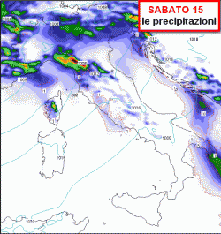 Sabato piogge sparse al centro-nord e sulla Campania, quota neve il ulteriore rialzo al settentrione. Domenica ultime piogge al sud, qualche nevicata sulle Alpi, abbastanza buono altrove. Lunedì precipitazioni in transito al centro e sul basso Tirreno, neve sui settori confinali delle Alpi, freddo al nord.