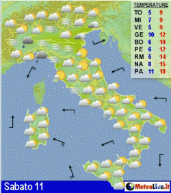Su tutte le regioni avremo ancora una nuvolosità irregolare. Possibilità di deboli piogge sulla Sardegna orientale ed occasionali pioviggini lungo l’Adriatico. In giornata migliora sulla Toscana, con schiarite. Ventilazione in rotazione ad est, clima non freddo.