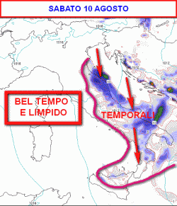 Tendenza per i giorni successivi: Tra martedì e mercoledì ritorna un po’ d’instabilità al nord con qualche temporale. Bello altrove. Ferragiosto con il sole su tutta l’Italia a parte un po’ di nubi sulle Alpi. Caldo nella norma.