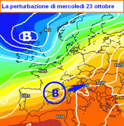 Lo vediamo bene nella mappa posta qui a fianco, dove l’inflessione del geopotenziale, ovvero quel nocciolo di bassa pressione contrassegnato con la lettera "B" azzurra, tradisce la presenza di una attiva perturbazione. Piogge attese in particolare al nord (forti lungo larea alpina e sul Levante Ligure) e su diverse regioni del centro. Attenzione alla Toscana, dove potrebbe piovere intensamente, anche nella giornata di giovedì 24.