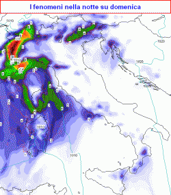 Condizioni di tempo molto perturbato su tutte le regioni. Piogge forti sulla Liguria di ponente e fascia prealpina occidentale. Possibili nubifragi e dissesti idrogeologici. Ventilazione molto forte da sud est sulla Liguria, quota neve oltre i 2500 metri.