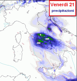 Veloce peggioramento al mattino sul Tirreno, dove arriveranno piogge e qualche rovescio, nevoso sopra i 700-900 metri. Estensione dei fenomeni al versante adriatico in giornata, mentre migliorerà sul Tirreno. Fenomeni meno frequenti in Sardegna. Ventoso.