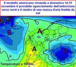CRISI: il modello americano ha rimandato un possibile cambiamento del tempo al week-end 14-15 novembre, quando l’anticiclone potrebbe sbilanciarsi verso nord e favorire un rientro da est di aria più fredda. Tutto dipenderà dalla spinta più o meno accentuata della corrente a getto.