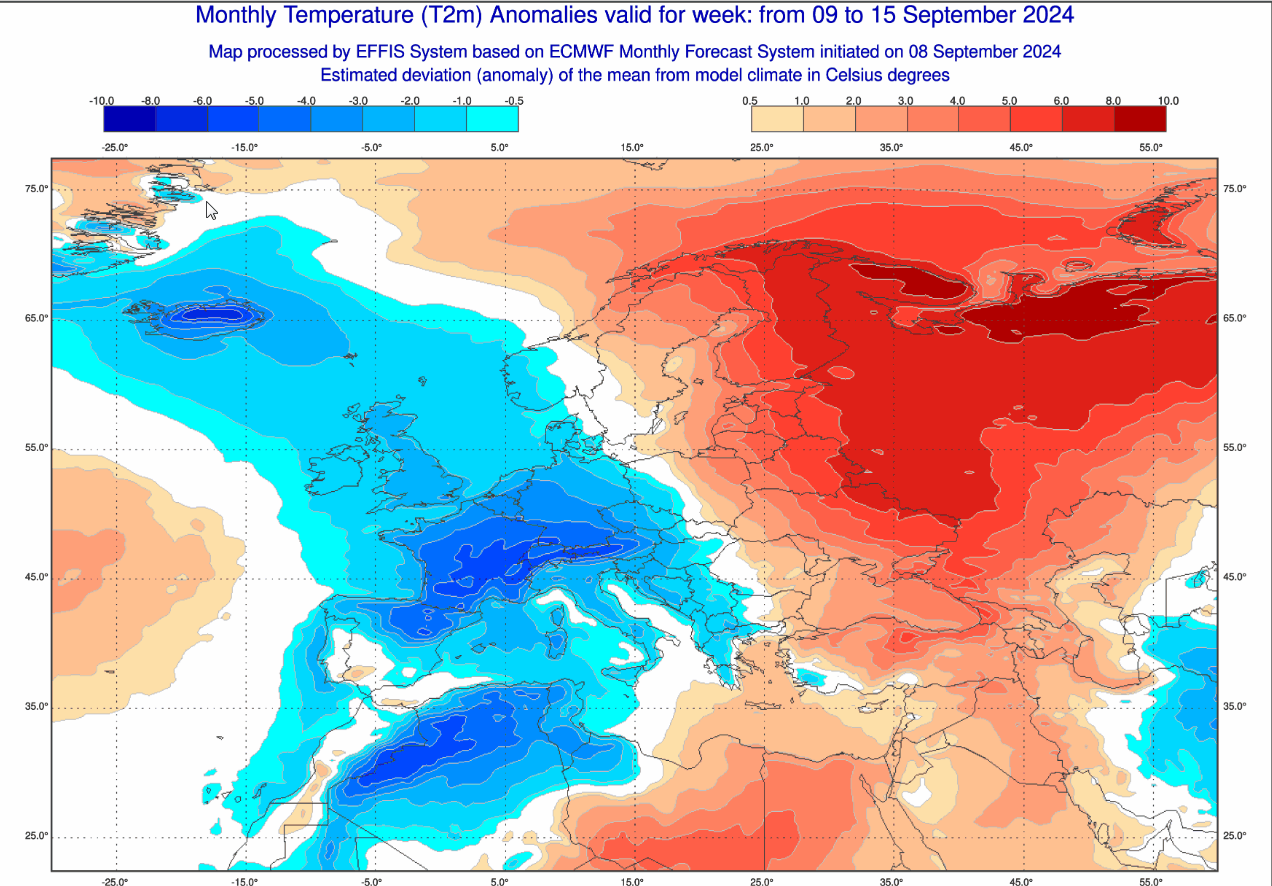 Dal caldo al quasi freddo in un attimo. La natura spesso si muove per estremi e non per giusti mezzi, ma questa non è di certo una novità. Questa mattina il prestigioso centro di calcolo ECMWF mostra un frangente con temperature più basse del normale che dovrebbe abbracciare gran parte del Continente tra il 9 e il 15 settembre, ma facciamo parlare le mappe.