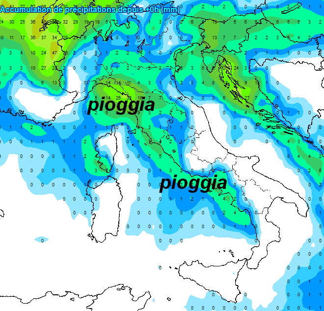 Meno generosi il modello tedesco DWD e quello americano GFS per lo stesso intervallo di tempo: