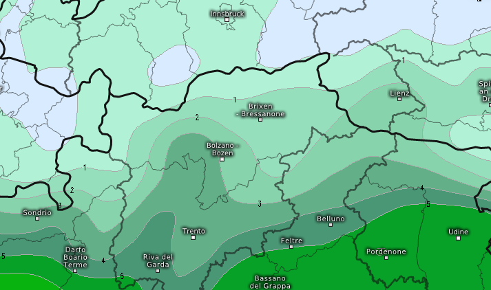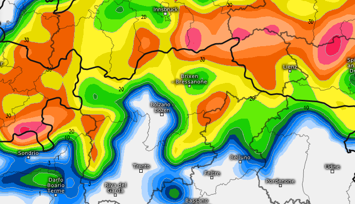 Anche 25-30cm si registreranno oltre i 2.000m tra Madesimo, St.Moritz, Livigno, il Tonale, lo Stelvio e poi su diverse vallate dolomitiche altoatesine, specie sull’Alpe di Siusi, il Gardena, il Pordoi, il Sella, e poi in Valle Aurina e Ridanna.
