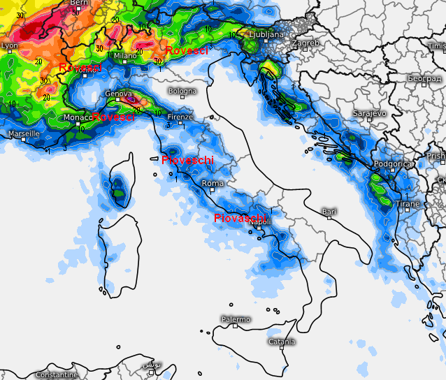 Le aree maggiormente temporaneamente esposte a questo flusso “piovoso” saranno parte delle regioni settentrionali ed a tratti la Toscana e le zone interne dell’Italia centrale.
