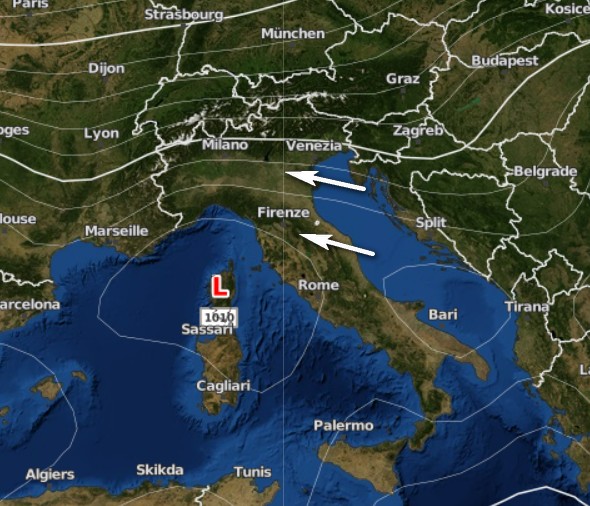 Aria fresca da nord-est seguiterà ad affluire anche nella giornata di martedì 21, accentuando l'instabilità soprattutto lungo la dorsale appenninica e facendo calare le temperature su mezza Italia.