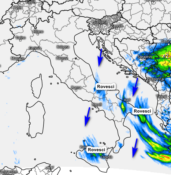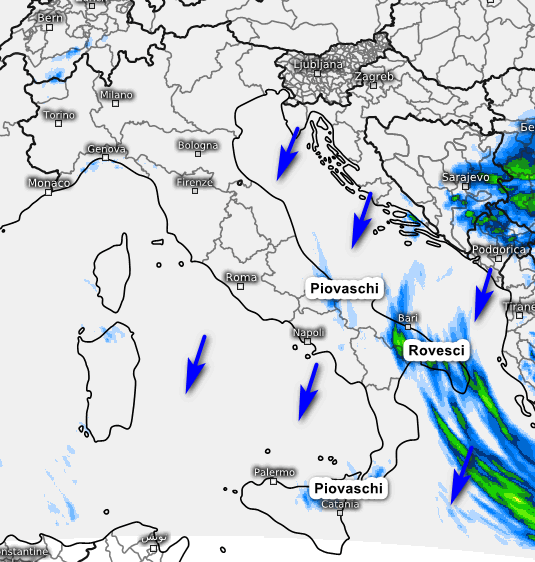 Ancora piovaschi su Molise, Puglia, est Lucania e Messinese. Nubi in aumento al nord ad iniziare da ovest, ma senza piogge, sul resto d’Italia ancora soleggiato. Venti molto forti da nord al meridione e sul medio Adriatico, più spenta la ventilazione altrove. TEMPERATURE in ulteriore calo.