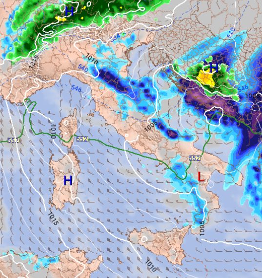 Infatti si scaverà una depressione mediterranea che genererà corpi nuvolosi che coinvolgeranno la Sicilia, la Calabria, il Molise e la Puglia. Nel contempo i primi temporali derivanti dall’affondo freddo sulle Venezie, colpiranno l’estremo nord-est:
