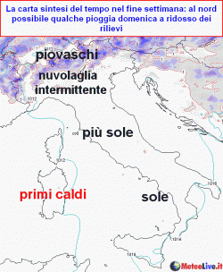Week-end variabile al nord, bello altrove. Sarà breve ma decisamente intensa, l'ondata di caldo che tra lunedì e giovedì coinvolgerà essenzialmente il centro-sud, portando temperature anche di +24°C a 1500m e di 40° al suolo in Sardegna, 37°C tra Sicilia e Puglia. Al nord già mercoledì torneranno i temporali ed entro venerdì la calura si spegnerà anche al centro-sud. Sabato temporali sparsi possibili su tutto il Paese ed ulteriore calo termico.