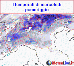 TEMPORALI: mercoledì al settentrione torneranno i temporali per l’inserimento di un nuovo corpo nuvoloso atlantico, mentre al centro-sud si vivranno altre 36 ore di caldo.