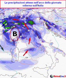 NUOVO VORTICE: un nuovo vortice depressionario si è inserito sul Mediterraneo centrale ed entro domenica attraverserà tutto il Paese. Oggi i fenomeni più intensi si registreranno tra nord e centro, nel fine settimana al centro-sud ed in parte sul nord-est.