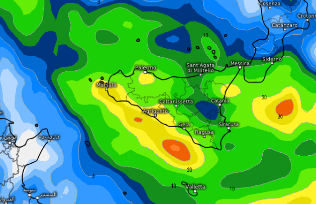 I nuclei temporaleschi, coadiuvati in quota dal passaggio di un ramo della corrente a getto, potrebbero formarsi ad asse obliquo (dunque molto intensi) tra Agrigento, Gela, Caltanissetta, Catania, poi tra Reggio Calabria, Siderno, Catanzaro e Crotone, per terminare la loro corsa tra Lecce e Gallipoli.