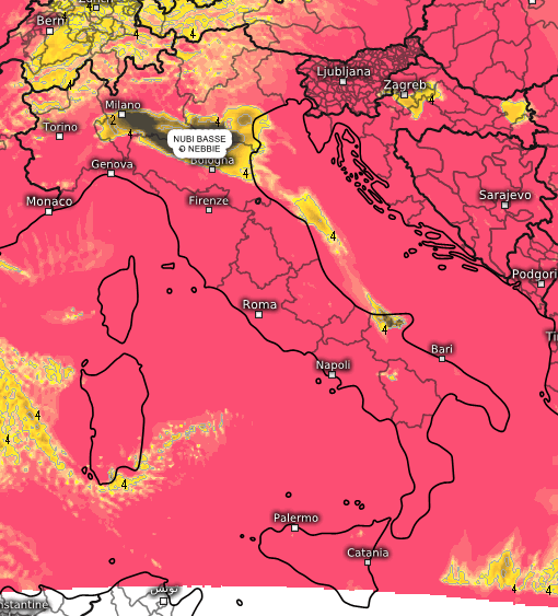 Tempo stabile ovunque. Situazioni nebbiose o nubi basse tra la bassa Lombardia, l’Emilia ed il Veneto. Temperature molto miti in quota, inversioni termiche sulle pianure e nelle vallate dove di notte e al mattino farà freddo.