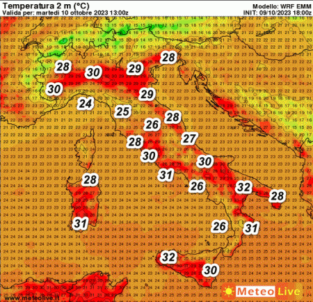 Notiamo ancora valori anche superiori a 30°: 32° sul Foggiano, 31° sulla Sardegna meridionale e la Calabria ionica, 30° in Valpadana, sul Lazio e la Sicilia orientale. Insomma, l’ennesima giornata estiva completamente fuori luogo in Italia.
