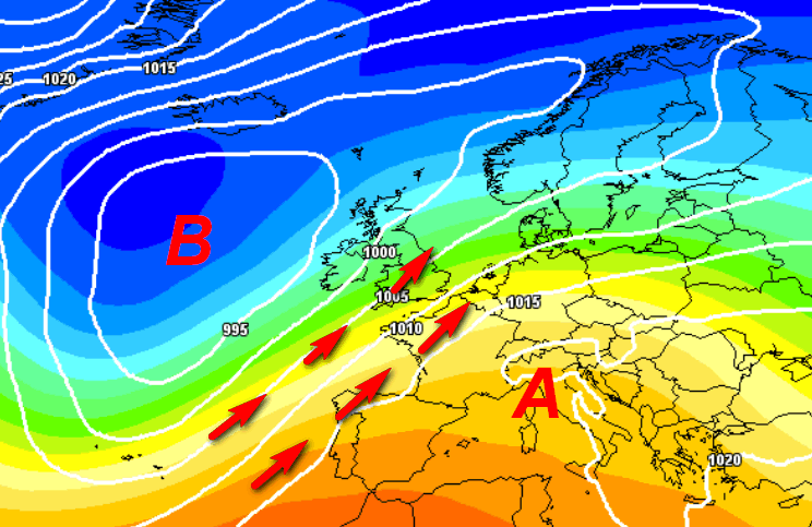 Depressione in azione sul Vicino Atlantico ed alta pressione sul Mediterraneo e l’Italia. Con questa situazione ribadiamo una quasi completa assenza di fenomeni con nebbie, inquinamento ed inversioni termiche specie di notte e al primo mattino sulle pianure del nord e nelle vallate incassate del centro. Di giorno invece il clima si prevede piuttosto mite per il periodo.