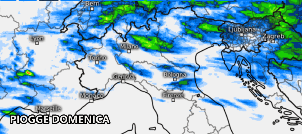 In effetti nel corso di questa domenica, soprattutto tra pomeriggio e sera, potrebbero svilupparsi violenti temporali tra Friuli, alto Veneto, Trentino-Alto Adige, alta Lombardia e alto Piemonte. I temporali lentamente si sposteranno sulle zone pedemontane e successivamente anche in Val Padana tra la tarda sera e la notte di lunedì. Al passaggio del fronte freddo ci sarà anche un repentino calo delle temperature. Di seguito le piogge cumulate nel corso di domenica (tra pomeriggio e tarda sera principalmente), secondo il modello Swiss su base grafica Meteologix: