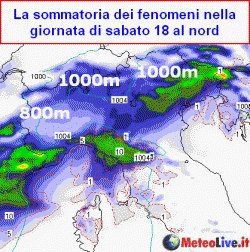 Dopo una breve tregua, sabato di nuovo acqua, con limite della neve in rialzo in media oltre gli 800-1000m. Mitezza al centro-sud, specie all'estremo sud. Domenica rovesci e temporali anche al centro-sud. La prossima settimana inizialmente ancora maltempo, in seguito tregua, ma in seguito afflusso di correnti nord-occidentali con tempo variabile. Più freddo verso la fine del mese con opzioni nevose al nord da valutare.