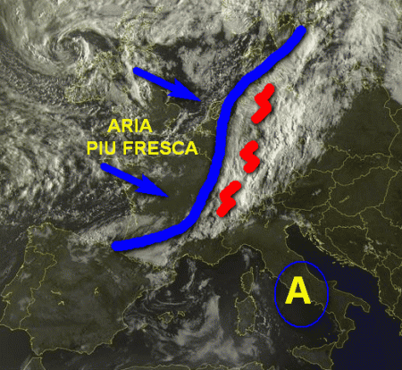 Il fronte freddo in questione riuscirà a penetrare con la sua coda anche sull’Italia e tra domenica sera e martedi metterà fine al caldo intenso a suon di temporali ad iniziare dal settentrione.