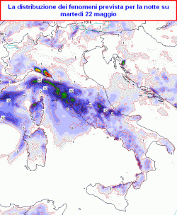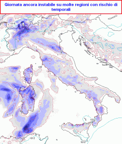 DOMANI: al nord molto nuvoloso con precipitazioni frequenti, a prevalente carattere di rovescio o temporale, con pioggia abbondante; instabile al centro con rovesci temporaleschi alternati a schiarite, variabilità al sud e sulle isole con schiarite ma anche nuovi temporali in arrivo sul basso Tirreno e soprattutto sulla Sicilia. Temperature in lieve calo al nord.