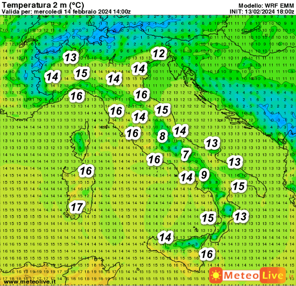 Queste le temperature attese in Italia alle ore 15 del pomeriggio odierno: